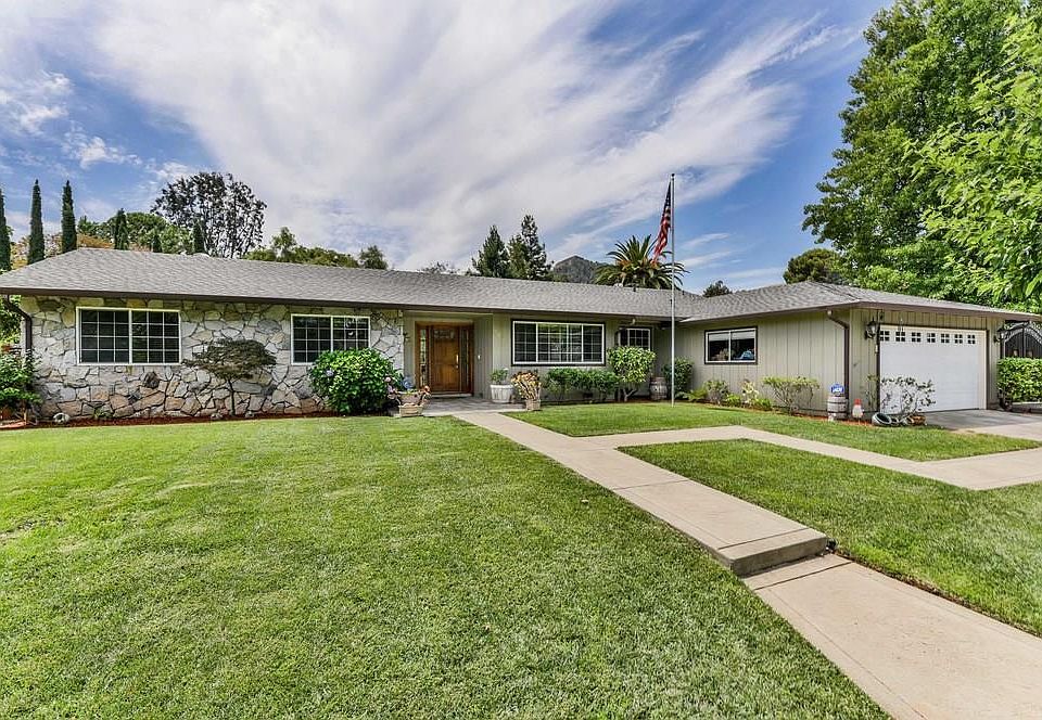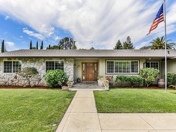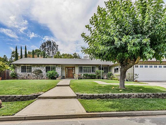 This wonderful single level 5 bedroom, 2.5 bath is beautifully maintained and updated. Really spacious rooms with large flat backyard with pool, SPA, room to garden, play and entertain. Home features new carpet, dual pane windows and french doors, tile floors, updated baths and more. Kitchen is custom designed with island granite top, stainless steel appliances and wood cabinets galore. 2 car garage indoor laundry room, central heat and A/C. 2 custom storage sheds, and RV parking. Super location assigned to great schools.