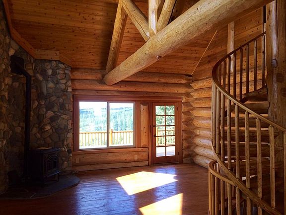 First time on the market! Enjoy the amazing views from this impressive log home with shop on acreage bordering hundreds of acres of state land. The house projects good eye appeal, functionality and is built with quality construction materials. Home features a main floor master bedroom & laundry room, covered front porch, open deck off the living room and master bedroom, wood floors, granite countertops, vaulted ceilings, central air & heat, two pellet stoves, 24x30 shop w/concrete floor, detached 24x24 garage, detached 14x26 outbuilding (can be used as additional covered parking). Shown by appointment only. Listing agent related to seller.