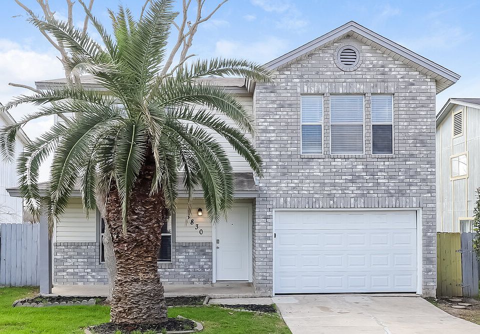 This San Antonio, TX rental home has three bedrooms, two and a half bathrooms, an attached garage, and a fenced-in backyard. The living room is bright and open with tile flooring and tons of space. When you travel through the arched doorway into the kitchen, you'll find a functional and modern space that has stainless steel appliances, long countertops, and roomy black cabinets. When you're done in the kitchen, head into the master suite. It features plush carpeting, large windows, a walk-in closet, and a private bathroom. Other key points include the covered patio and pet-friendly policy. You can schedule a tour of this property today.
