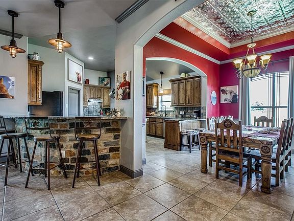 Beautiful home on oversized corner lot complete with wrought iron fence and electric gate. This home once was a builders model home, and was built with lots of custom features. You will love the open floorplan that is very inviting with all the arched doorways, tall ceilings, custom built-ins, oversized kitchen with huge island, decorative lighting, abundance of storage, walk in closets thru out, wine fridge, beautiful wood building fireplace, tons of windows, incredible master bath with jetted tub, over - sized walk in shower, his and hers separate vanities and storm ceiler just to list a few. Sit on the covered back porch and enjoy the spacious back yard with mature trees. It's definitely one of a kind! 2021-09-30