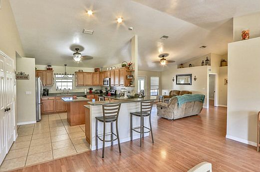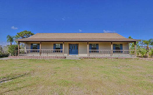Enjoy the country lifestyle in this sought-after 4/2 in popular Orange Blossom Estates! This beauty boasts a huge open floor plan, large kitchen with stainless appliances, wood cabinetry & solid surface countertops, easy-care flooring throughout living areas and soaring cathedral ceilings with architectural plant shelves. There's an oversize master bath suite with tub & walk-in shower. Outside you'll find a 20 x 20 shed/workshop and fully fenced back yard all situated on an acre of high & dry land. Come take a look at this great home today!
