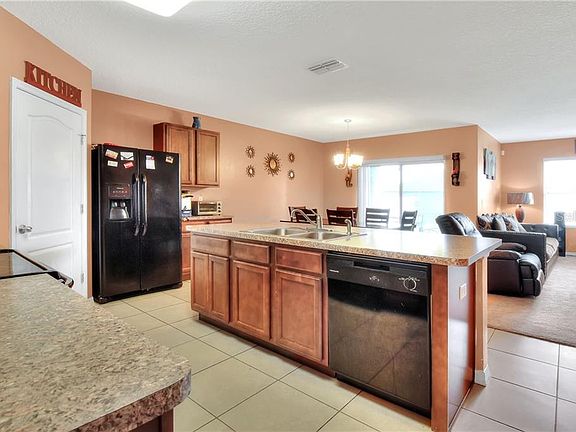 Be amazed at this dramatic entrance of beautifully lined Florida Palm trees leading to this popular Lakeside Landing community. Extremely popular Cali model with 4/2 split spacious bedroom plan. Lakeside has VERY LOW HOA FEES that offers community pool, playground, soccer/playing field. Save thousands of dollars on this home with a lot of extras already in the home. Seller spent thousands of dollars to install a TOP OF THE LINE WATER SOFTENER THAT RUNS THROUGHOUT THE ENTIRE HOUSE. Impressive spacious open areas that is great for entertaining family and/or guest. Steps away from the family room leads to a covered lanai. Large open kitchen with island like design is equipped with all appliances. HUGE WALK-IN-PANTRY, breakfast bar with large eating space. The inside laundry room comes equipped with the washer and dryer with the property. Master suite is spacious with a large walk-in closet plus with an additional close. High top vanities with dual sinks, walk in shower. The other 3 bedrooms are generously sized. Lakeside Landing is located in a great location along U.S. highway 27 and 1-4, shopping, entertainment, All major theme parks.
