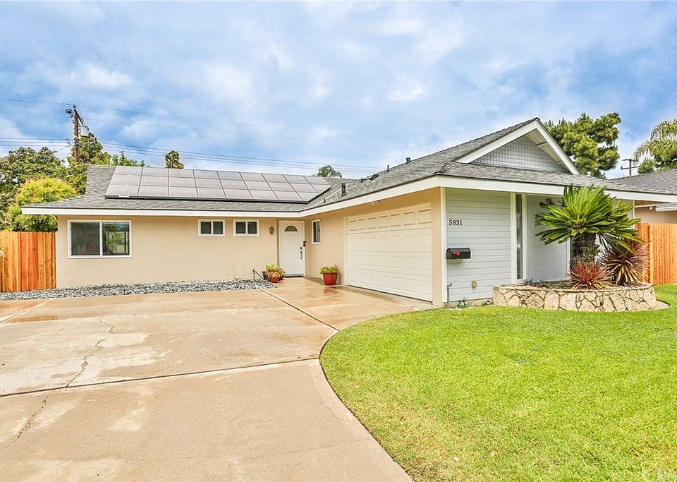 Breathtaking beach home with really nice curb appeal and a complete remodel including; kitchen with new cabinets, quartz counters, newly tiled back splash & stainless steel appliances, bathrooms with new quartz counters, tiled showers & high end fixtures, bedrooms with mirrored closets + Cal closet built-ins in the master, new elegant tile flooring, recessed LED lighting, smooth ceilings & walls, ceiling fans, high baseboards, interior paint, dual pane windows & slider + paneled doors, all done thru-out the house! Bonus features include; air conditioning & a newer furnace, soft water system, 200 AMP electrical panel, owned solar panels with practically no electric bill + the fireplace was removed to create a very modern & open flow concept from the dining room through the living room, making this a one of a kind home! The private rear yard offers a sprinkler system, new redwood fence, new deck, a patio & large grassy area! This fabulous home is also walking distance to award winning schools, a park, golf, shopping, restaurants and is only a few minutes away from the beach or the Bella Terra Mall!