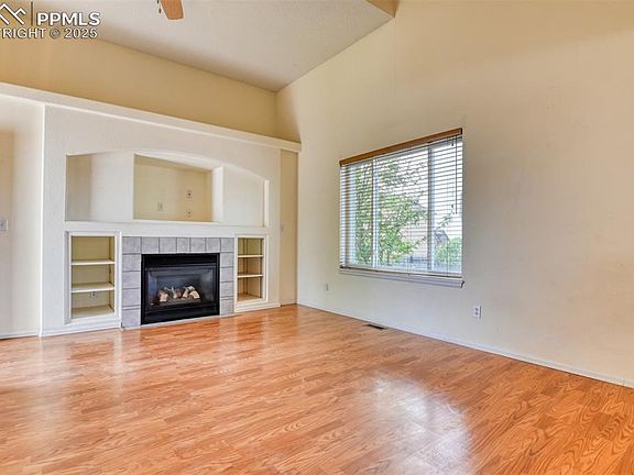 Welcome home to this beautiful 2-story, 3-bedroom, 3-bath, residence located in a Stetson Hills cul-de-sac. This move-in ready home features wood laminate flooring throughout the main level, a bright two-story living room with a cozy gas fireplace, built-ins and a separate dining area that walks out the 10x16 concrete patio—perfect for outdoor entertaining. The kitchen boasts a breakfast bar, tile countertops and backsplash. Upstairs, the master retreat offers a double vanity, a walk-in closet, and ample space to unwind. Enjoy the extra space in the finished basement areas. The unfinished areas is roughed-in for another bathroom is you so choose. Convenient access to the Powers Corridor for shopping, entertainment and easy access to military bases as well as heading north if you need to.