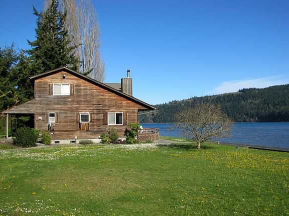Stunning and very private, no bank, Discovery Bay, 500+- waterfront acreage. Pull your boat up to a newer cement bulkhead or moor out. Dig clams and oysters on your own tidelands. This warm, lodge style home is a perfect retreat! A separate guest house with a boat storage shed is steps from the water and an easy place to launch your boat. Two tax parcels (4.5 acres); one with home and one buildable parcel., adjacent. Priced under assessed value!