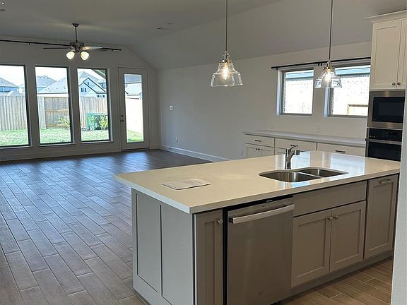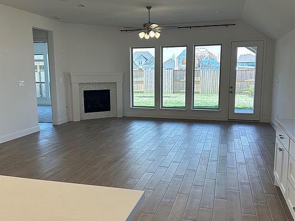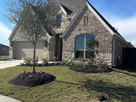 Newly constructed 4-bedroom, 3-bathroom home with high ceilings and an open floor plan. The kitchen features an island and ample cabinet space, opening up to the dining and living areas. The primary suite boasts a double door entry to the primary bath with dual vanities, a garden tub, and a separate shower. Additional bedrooms are spacious, with one having an en-suite bathroom. This never-lived-in property at 5831 Sea Grass is a must-see for anyone seeking a modern and comfortable living space.