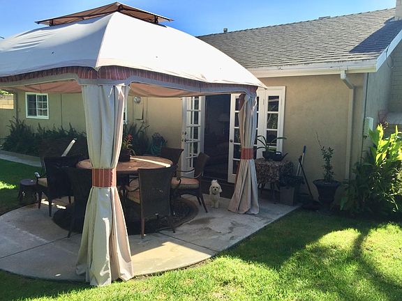 This recently renovated 3 bedroom 2 bath house is a beach gem. The home features a picturesque courtyard with a large fountain and the backyard includes a gazebo, fruit/avocado trees, and grass to enjoy. The neighborhood is backed up to the wetlands and the home has zero road noise since it is an interior tract location. Kitchen and bathrooms have granite counters. Hardwoods throughout living areas and carpet in the bedrooms. The house has an oversized two car garage with plenty of parking available in the driveway and street. The gardening service is included. No pets preferred, but a small pet would be considered for the right tenant with a non-refundable pet deposit. Dishwasher, refrigerator, washer/dryer and microwave all included. Access to the best schools Huntington Beach has to offer, the beach, close to LA county as well as south Orange County- this house has it all!