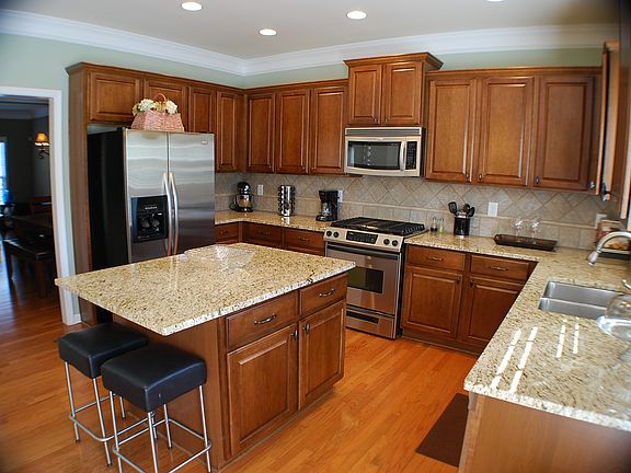 - Kitchen Features: Island, Breakfast Area, Cabinets Stain, View To Fmly Rm, Counter Top - Stone