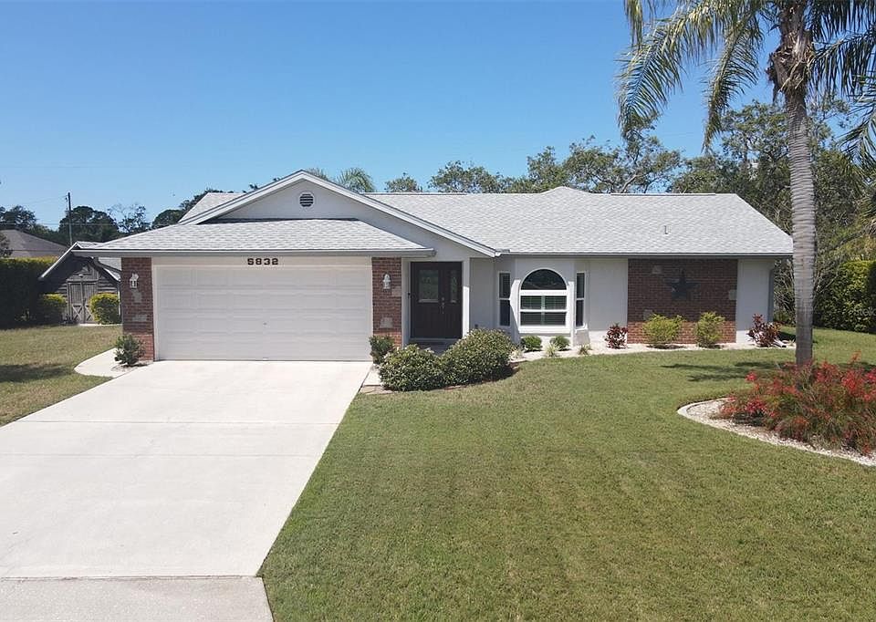 What a lovely home!! Beautiful 2 bedrooms, 2 baths, (split bedrm plan) 2 car garage home on 3 corner lots in South Venice (w/sprinkler systems hooked to well in back yard) home on CENTRAL WATER AND SEWER along with Tankless hot water heater! This home has been beautifully updated and upgraded including both bathrooms updated, remodeled, hurricane windows in 2017, New roof 2021, AC 2013, new stainless kitchen appliances 20,21, the list goes on! Beautifully landscaped lot with concrete piping in front so no ditches to mow!! Nice trees, shrubs and landscaping gives a nice setting for this home and bonus shed on a slab, w/electric in the back corner yard with L shaped paver brick roofed patio! Enter home thru beautiful etched glass door into volume ceilings in living room, bay window, dining room, lots of new and newer interior paint, great kitchen w/breakfast bar, skylight, updated kitchen cabinets, granite counters, adjoining family room w/ plantation shutters and sliding glass doors to large covered/open lanais. You will enjoy the fresh cleanliness, overall appearance and pride of ownership this home presents. Home has Ethernet data transfer system as well. Located in South Venice close to Manasota Beaches, South Venice has a volunteer HOA with small fee that provides Ferry service to South Venice Beaches, private boat ramp and dock available, etc. All this is within 15 minutes to Historical Downtown Venice w/shopping, dining, library, conference center, art center, All Ages lighted Kiddy Fountain, Venice Theatre and Venice beaches on the Gulf of Mexico and Intracoastal Waterway!!