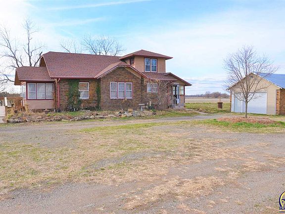 FARMHOUSE CHARM on 2.77 Acres in the Kaw Valley. Americana barn over 100 yrs old would make for a great event venue on the outskirts of Topeka. Conveniently located 2 miles from highway access to go any direction with blacktop road frontage. Large master bedroom makes up the upstairs with attic space to expand. 2 bedrooms on the main floor. Original oak floors throughout. 64' X 24' Quonset Building w concrete floor. River-bottom ground makes for excellent gardening and easy to irrigate with private well.