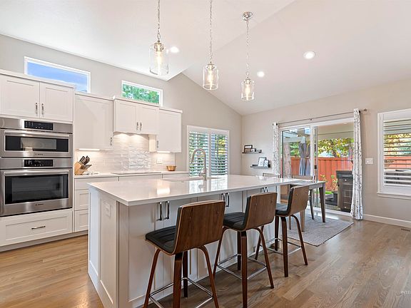 Find the best of East Boise's amenities in Surprise Valley...lounge by one of the pools, meander along the neighborhood trails, hone your skills on the tennis courts, join your neighbors at the clubhouse, all just minutes from the Boise River/Greenbelt, Micron & Lucky Peak!Welcome guests through this meticulously maintained home where white oak hard wood flooring leads to the inviting, light filled living room below soaring ceilings.The exquisite, completely renovated kitchen sparkles with quartz countertops, stainless steel appliances, custom white cabinetry w/ abundant storage/pullout drawers & updated lighting.Main level living includes primary suite, laundry room, office w/ flexible floor plan.Primary en suite features huge walk-in closet, elegantly renovated bath, tiled walk-in shower, linen closet.Entertain below the covered patio & gather round the fire pit after the sun goes down.Spacious 4th bedroom easily converts to bonus room.Kitchen renov/hard wood floors/roof/ext paint/furnace, AC, ALL new 2020.