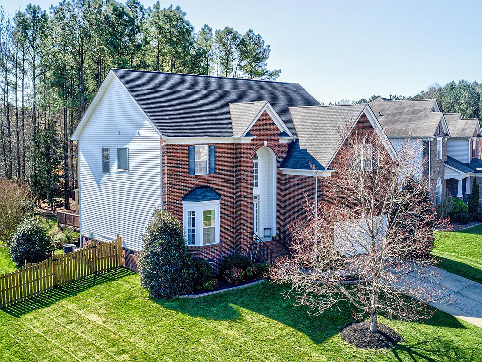 Beautiful, well kept home on large wooded corner lot surrounded by privacy fencing. Add the large custom brick patio with custom fire pit and you have a fantastic private outdoor space to entertain family and friends. Inside boasts a huge, two story great room with a wall of windows that bring in ample, uplifting natural light & built-in cabinetry. Gorgeous kitchen is truly the heart of the home with huge center island, beautiful granite, new Frigidaire Gallery appliances in 2019, under cabinet lighting, tile backsplash, tall 42" cherry cabinets, water filtration. Bright large dining room currently used as second living area. Guest room on main w/ access to full bath. Seller upgraded all bathrooms with new granite vanities including master bath which also includes garden tub & huge walk in closet. Third bedroom is massive & can be used as a bonus/rec room. Awesome neighborhood amenities include pool, basketball court, tennis courts, playground & clubhouse. This one will go quickly!
