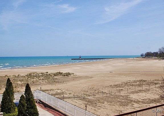 Breathtaking Lake Mich views, meticulously updated, 3 levels of private living. Showplace home in gated community, custom woodwork...crown molding, fireplace mantle, door frames. Stained glass transom, newer custom kitchen, unique throughout. Relax with a book in the two story solarium. Open central staircase. LR, MBR, FR, bed 2 have spectacular lake views of a perfect sunrise! 3 car gar. See floor plans, addl list.