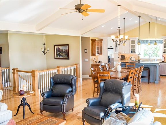 Sellers are offering this beautifully appointed, open-concept ranch for sale with approximately TEN acres (TBD after survey). Includes deep, stocked pond with central fountain. Wide plank hickory flooring dominates the upper level of this ranch. Soaring views over the pond to a picturesque tree line of sand creek. House could be 4 bdr, currently has 3 plus a library and separate office on main floor. Gourmet kitchen features Viking appliances, gas range, 2 ovens plus warming oven and all other nice amenities. Wine bar and fridge. Spacious walk in pantry. Granite countertops. Alderwood entry and FP. Radiant heated floors in master bath. 2 sun rooms. Lighted, trayed ceiling in MBR. Spacious his/her walk in closets complete with full organizers. Geo-thermal heat with propane back up. On demand water heater. This listing should be cross referenced to MLS # 6197241. It may be purchased either way.