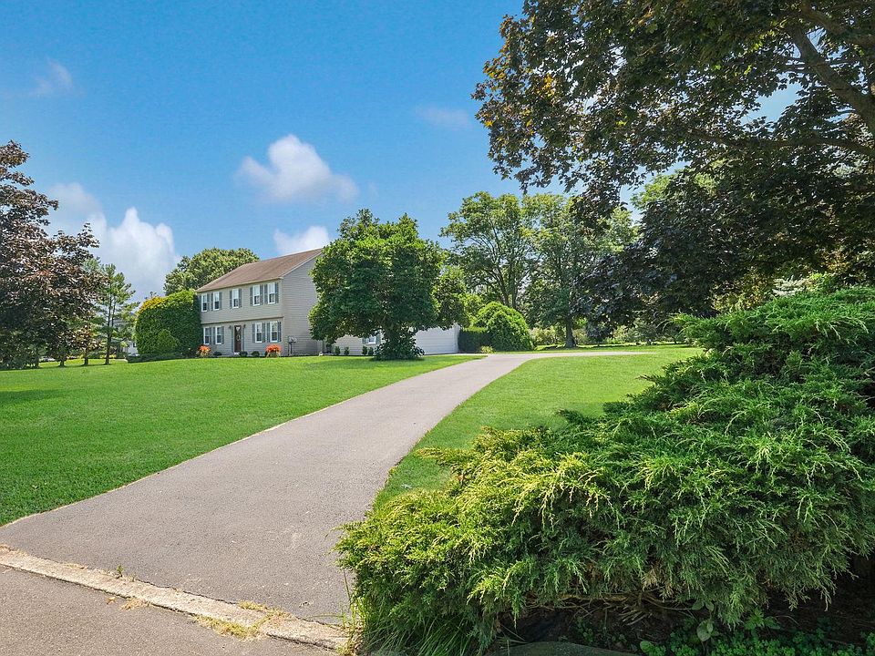 This fabulous colonial has been lovingly cared for by the same owners for the past 42 years. Some of the thoughtful improvements over the years have included replaced siding, windows, front paver walkway, wonderfully renovated kitchen, family room and upstairs bathrooms and a new Bosch HVAC system installed in 2021. All the sellers left for you to do is a fresh coat of paint. This center hall colonial with two front entrances and a side car garage, sits back from the street with a long driveway and an oversized parking pad for convenience. The backyard is a true gem with a paver patio that includes a hot tub for relaxation. The property includes 1.38 acres and is beautifully manicured creating a breathtaking park-like setting. As you enter the home, you’ll be greeted by the living room and dining room perfect for entertaining. The back of the home will WOW you with the chic and upgraded kitchen with no expense spared. Enjoy the kitchen island, stainless steel appliances, double oven, built-in microwave, dishwasher and a farmhouse sink. There are an abundance of soft close kitchen drawers and cabinets, and a nice size pantry for additional organization. The eat-in-kitchen flows into the freshly updated family room featuring a focal mantel piece, hearth and gas fireplace. This is an ideal space for relaxation and gatherings. The lovely views from the back of the home provides for a private and tranquil atmosphere. There are two entrances into the mudroom/laundry room. The back entrance leads you to the hot tub, which is included in the sale. Let’s journey upstairs to find the generously sized primary suite which includes a walk-in closet, built-in vanity and an updated primary bathroom with a frameless shower stall. Three additional bedrooms and an updated hallway bathroom complete the second floor. The unfinished lower level offers many possibilities and includes accessible bilco doors. The Belmont Farms community is highly desirable and conveniently located, offering close proximity to shopping, dining and various walking and biking trails for outdoor enjoyment. Quick settlement possible.