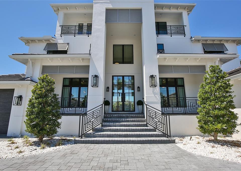 Located in the gated Community of Legends Bay the St. Regis model home with 4 spacious bedrooms and 5.5 elegant baths offers privacy with plenty of space to entertain family and friends. Move in ready. With a large lanai and courtyard, five view-enhancing balconies and a three-car garage it has everything you could imagine in a luxury Florida estate. The residence features a grand, two-story foyer, greeting you with soaring, 12-foot ceilings. For all your entertaining needs, there's a formal dining room and den, and the great room offers views of the backyard with pool, spa and sun shelf through a wall of sliding glass doors. Tranquility, seclusion and privacy surround this luxurious furnished property. There's ample room for you to prepare the most delicious meals in a fully-equipped kitchen with a walk-in pantry and butler's pantry. The exclusive first-floor owner's suite is accessed by a private hallway that leads to a luxe bedroom with direct access to the lanai and a sunlit sitting area. The en-suite bathroom details are amazing with dual vanities, linen closet, soaking tub, and tiled walk-in shower, that will make your end-of-day routine feel like a trip to the spa, each and every single day. On the second level, two rear-facing balconies let you enjoy the warm Florida breeze in privacy along with a front balcony. You'll find three bedrooms, each with their own attached walk-in closet and bathroom, a large bonus room and a powder room. The third level features an entertainment space complete with access to a large balcony with beautiful views of the Sarasota Bay, downtown Sarasota, Longboat Key and nature preserve, a wet bar and a powder room. An elevator provides easy access to every floor. If you are ready to experience luxury in a way that only a St Regis Model can provide, welcome home.