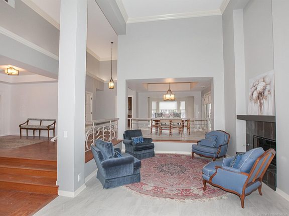 Beautiful, meticulously maintained home located in Tulsa's elite gated neighborhood Glenoak. This updated home features open concept, dramatic high ceilings, 2 living areas, 2 fireplaces, newer HVAC, newer appliances & a large covered back patio.