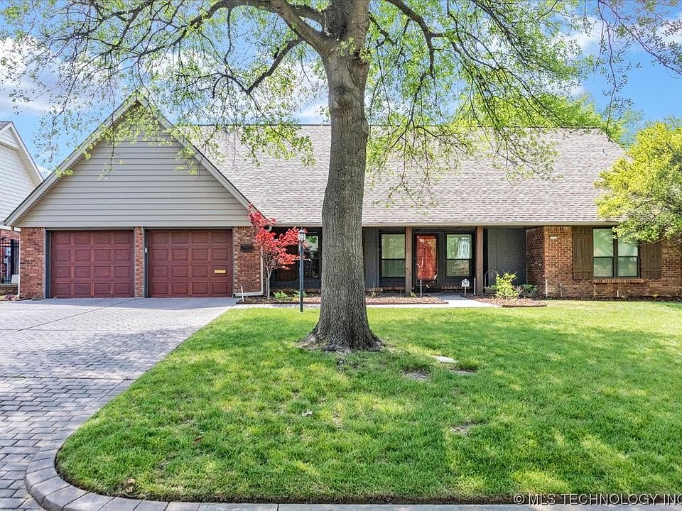 This large one story home is 4 beds and 3 baths. You will love the massive living room with a wood burning fireplace and built in shelving. The enormous kitchen is a dream with granite countertops, double electric ovens and even an induction cooktop. There is also a beverage fridge, pantry and storage galore in this kitchen. There is a formal dining room that can be used for dining or you could even turn it into an office. 1 bedroom and 1 full bath is located on the opposite side of the house from the other bedrooms and bathrooms, making this a perfect mother-in-law suite. All bedrooms are large and spacious with large closets. The large primary suite has it's own bathroom with both a large tub and large shower. Two separate vanities with sinks and ample storage. You will even find his/hers walk in closets. The covered back patio can be accessed from the MIL suite, primary bedroom or the living room. You will love all the storage this home has to offer and the convenient location to dining, shopping, hospitals and Southern Hills.