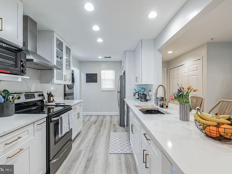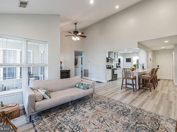 Penthouse condo, cathedral ceilings. Open floor plan .The entire home has been renovated . A luxury gourmet kitchen that opens up to the entire condo overlooking new luxury vinyl floors. Easy conversation and great entertainment space. Living area has gas fireplace. Sliding glass doors lead from the dining area to your private balcony, large enough for table and chairs! Relax & unwind with your beverage of choice. Primary bedroom with cathedral ceiling, en suite bath & double closets. Hall bath serves as guest bath. One of the larger floor plans @ 1292 sq. ft. Short walk to Town Center Mall, library, restaurants, entertainment, transportation. Major commuter routes: route 29