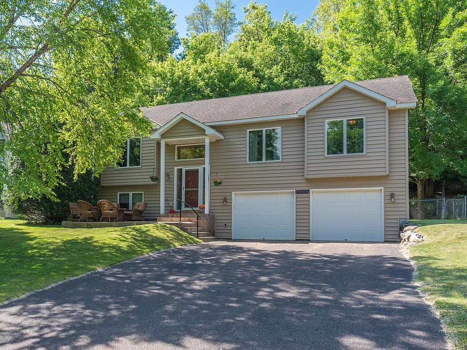 One owner, updated home in outstanding Mound location! Enjoy views of both Lake Langdon and Lake Minnetonka at the same time! Just a short walk across the road to Surfside park where you can enjoy the beach on Cooks Bay of Lake Minnetonka. Large garage is extra deep for storage or a workshop area. Front concrete patio is a wonderful spot to enjoy the lake views with guests! Step inside to plush new carpeting on the main level. Spacious vaulted living room and new hardwood floors span the kitchen and informal dining area. In the kitchen you will find a stainless dishwasher and range as well as updated lighting and plenty of cabinetry. Large deck and exposed aggregate patio out back allow for entertaining in the private wooded back yard. 3 main level bedrooms including master bedroom with remodeled master bath. Lake views from two bedrooms. Lower level has a gas burning fireplace, ceiling fans, and 3/4 bathroom. New furnace and many windows redone with Andersen windows.