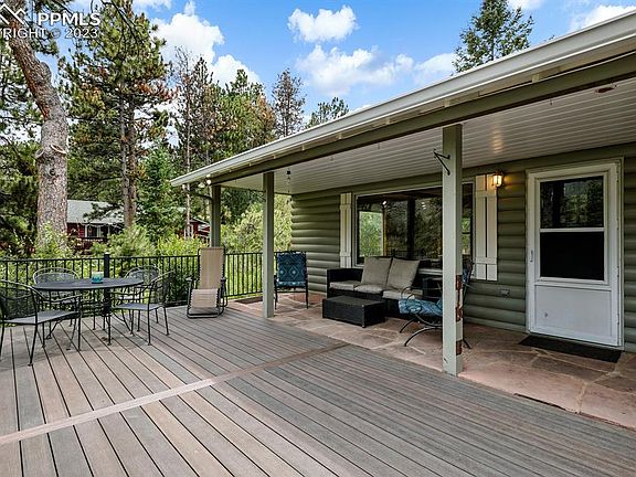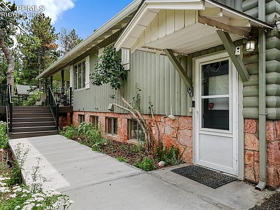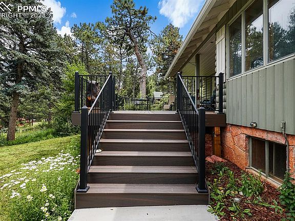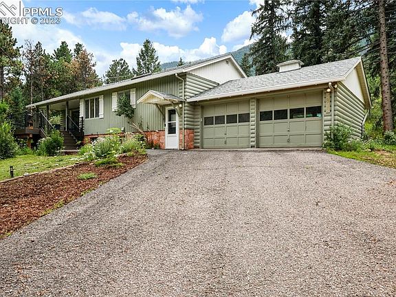 Colorado mountain living only mins from COS. Private, secluded and tucked at the end of the road surrounded by trees and mountain views, sitting on .63 acres. Raised ranch with 3 bd/2 baths, finished basement, new remodeled bathroom on main and basement, newly remodeled kitchen with tile accents and skylights, built in china cabinet in dining room, beautiful beamed ceilings, tons of built in’s thru out house, hardwood floors thru out, decorative wood panel walls, wood burning fireplace in main living/great room, new fixtures in basement bathroom, over 2000 sq ft of living space, partially covered new deck overlooking the mountains, back covered patio, original 50’s fire pit, RV parking. RADON 2016*NEW ROOF 2020*NEW DECK 2020*