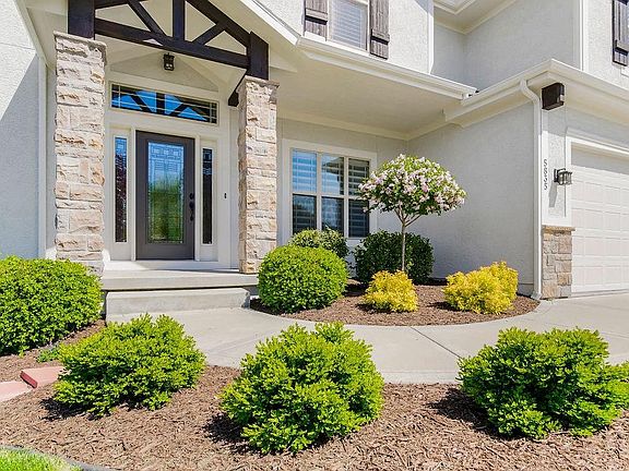 Nestled into a quiet cul-de-sac this home offers significant upgrades & recent renovations. This property has been transformed with well over $100K on improvements, highlighted by the outdoor living space, landscaping, and premium sound system including outdoor and in home wall mounted speakers, subwoofers, amps, among many other top of the line gadgets! Located in the 435 loop, you are minutes from entertainment, shopping & more. The kitchen boasts rich cabinets, granite counters, tile backsplash, abundance of storage & upgraded appliances. Also located on the 1st floor is the 5th bedroom perfect for an office, playroom, etc. The oversized master suite is stunning & offers a gorgeous en-suite with neutral tile, walk-in shower & tub. The secondary bedrooms are all wonderful size. Don't miss the finished lower level that is perfect for all your entertaining needs. There is a gorgeous expanded wet bar/kitchenette, huge living room, rec space and space for a home gym. New incredible sound system offers split sound options and can be controlled by your phone. The outdoors top off this home with over 860 sq ft of outdoor living space including a covered patio. Belgard paver patio with columns, seating walls, and 16 lights throughout, 4 outdoor speakers with a Heos sound system and upgraded professional landscaping throughout the front and back to finish the outdoor package. So many extra upgrades include new interior & exterior paint in 2023, Newer 5 ton, 16 seer, high efficiency AC, Hunter Douglas plantation shutters, black steel fencing, upgraded light fixtures in kitchen, dining room, eating area, and main entrance, Rachio wifi sprinkler control system including new sprinkler heads in back yard-including drip line for shrubs and trees and preventive drainage upgrades: buried five downspouts and installed two French drains on each side of the house. Incredible neighborhood and steps from the stocked pond. Seller is willing to sell any & all furniture/items in the home.