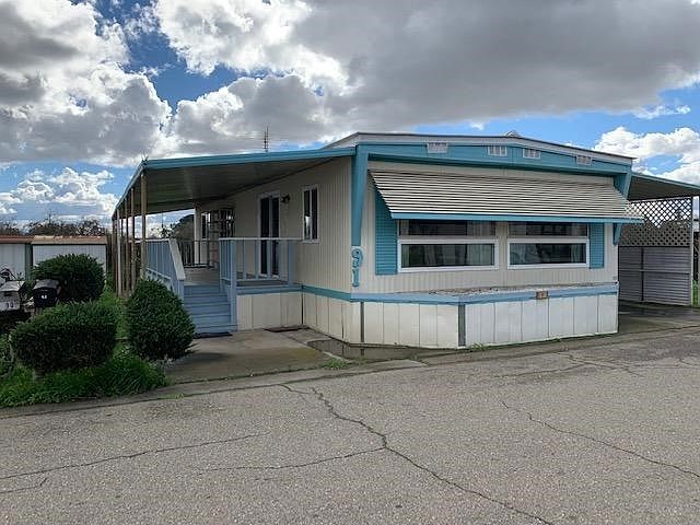 Spacious double wide in Cozy Senior Park. 2 bd 2 bath 1000sq ft. Nice covered porch, double stairs at rear entry. Covered carport and storage shed. Some TLC will make this a wonderful home. Make sure to see this one. Park Management must approve buyer prior to acceptance of offer