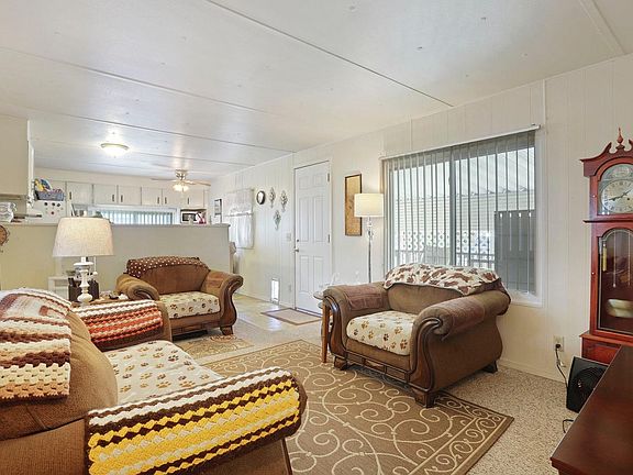 Darling Mobile home in affordable senior park. This home Boasts pride of ownership! Great 1 to 2 bedroom with Nice living room and kitchen and larger bath with tub/shower. Newer Central heat and air! Great yard with 2 sheds and super clean.