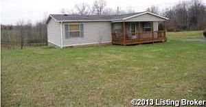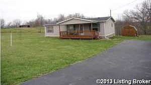 This cozy 3 bedroom, 2 bath home is located on minutes from Brandenburg, and is situated on a scenic 2 acre lot on Old State Road. This home is on a permanent foundation, has a covered front porch, blacktop drive, large rear deck, and a nice shed to accomodate all your tools. Inside you will find vaulted ceilings in the living room and kitchen, a large master bathroom with garden tub and shower, and many extras including a security system. For your personal viewing, please call our office!