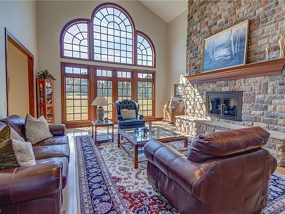 PRICED TO SELL! REDUCED! This gorgeous custom-built, stone home has "Quality" written all over it! Situated on almost 8 beautiful acres with amazing views of the valley and sunsets! This home has everything you've been looking for! The Great room offers 23 ft. ceilings, an amazing wall of windows that illuminates the room with natural light, highlighted by hardwood floors and a stone gas fireplace. The kitchen has cherry cabinets, quartz counters, custom back splash, stainless steel appliances, and a large dining area. A large walk in pantry makes sure there is a place for everything. The gorgeous master suite offers a secluded retreat with a gas fireplace and has a walk-in closet, en suite bath with custom glass & tile walk-in shower, granite vanities and garden tub. There are two additional first floor bedrooms that share a full bath, a den, half bath and laundry room with granite counter and white cabinets. Enjoy the views from the loft area and beautiful view of the valley from the back lot! Looking for an additional living suite? A second kitchen with Hickory cabinets, family room with fireplace, 4th bedroom, full bath with granite counter and second laundry room are in the lower level. All appliances upstairs and down stay. 3 car attached garage, plus a lower level garage and storage area! Save money on utilities with the Geothermal heating and cooling, plus the house currently gets free gas!! Dont miss out on this one of a kind property!