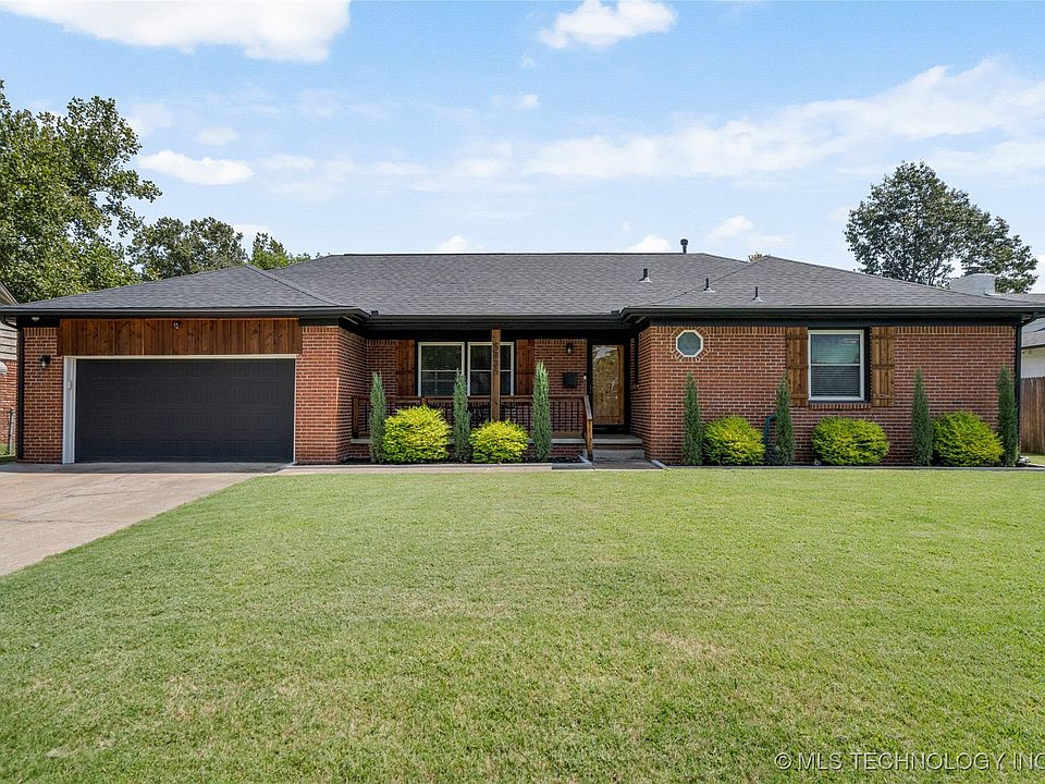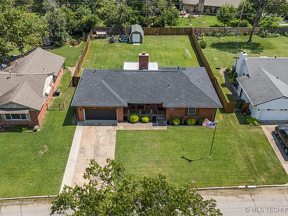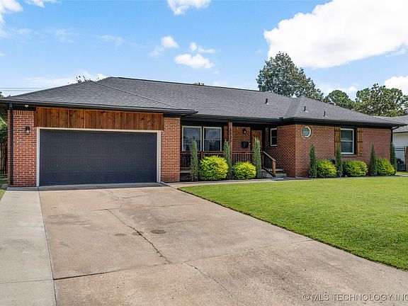 Holiday Hills classic. Full brick one story home. Remodeled including replacement windows throughout home, updated lighting and remodeled kitchen/baths. New Roof. New interior and exterior paint. Original hardwood floors entire home. Kitchen with granite counters. Two living spaces. Wood burning fireplace with new mantle. Primary suite has ensuite bath with two vanity sinks and shower. Hall bath is renovated and offers tub/shower. Large covered outdoor space for entertaining and private fully fenced yard. Outdoor shed. Garage is two car with storage. Garage also has heater and AC is desire to use as workshop. Blocks from Carnegie Elementary. Near LaFortune Park, St. Francis, Restaurants, Shopping.