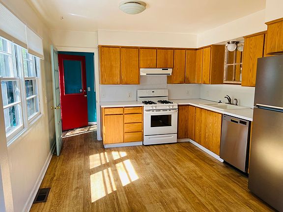 This house features two bedrooms on the main floor with full bathroom, and one bedroom or office space on second floor. Spacious fully fenced backyard great for pets and gardening opportunities. Open kitchen with room for dining table. Hardwood floors throughout, with lots of windows, allowing for plenty of natural light. Professional landscaping included. Tenants cover gas, electric, and water sewer. Detached garage for storage. Two offstreet parking spots. Conveniently located Near SE. Cesar Chavez Boulevard and just one block off of Southeast Woodstock. Walk to coffee, restaurants, grocery and pubs. Public transport just steps away. Open application period begins September 4 at 8 AM. Visit company website vacancies page to view screening criteria and apply online. This is not a type an accessible unit. $60 application fee per adult applicant. One year lease required. Renters insurance required. Pets allowed with increased deposit.