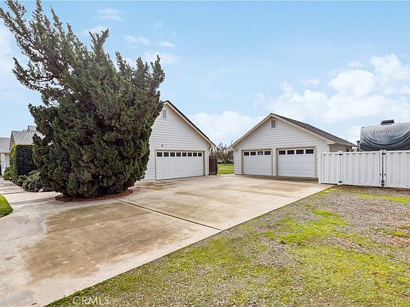 COUNTRY LIVING AT ITS BEST! This charming home offers 4 bedrooms and 2 baths and sits on a generous lot just over one acre. Good sized eat in kitchen featuring granite counters, tile backsplash, gas cook top lots of cabinets with pull outs and a lovely view of the beautifully landscaped backyard. Just off the kitchen there is a pantry to store everything and anything and includes access to the backyard. The living room features cathedral ceilings a cozy brick fireplace with a gas log insert plus lots of windows bringing in natural light! French doors (off the living room) lead to a tiled sun room offering a great room to exercise in, to grow your plants, great light to sit and read, endless opportunities. Primary suite is separate from the other bedrooms offering privacy, a walk in closet plus an extra closet. A spacious ensuite adjoins the Primary with dual sinks, large tub and separate tile shower. Beautifully maintained and well built original owner home in McSwain includes OWNED SOLAR, a 2 car attached garage plus a separate 600 sf shop (additional two car garage). An extra long driveway - RV PARKING W/ 30 & 50 AMP SERVICE - sewer hookup, fruit trees and a natural gas line for the bbq! No need to buy propane! PEST certification on file. All this located on a cul-de-sac!