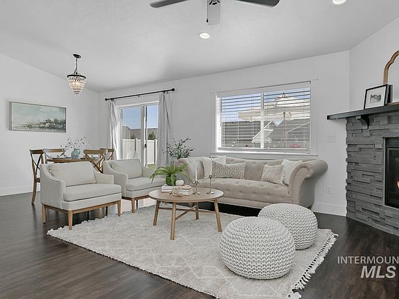 This home has all of the upgrades you would choose, but you don't have to wait to build it! Perfectly located close to everything in North Meridian, this 3 bed 2 bath single story home has vaulted ceilings and a wide open floor plan. The kitchen upgrades include bright white kitchen cabinets, stunning quartz counters, subway tile backsplash, apron farm-style sink and stainless appliances. Other upgrades include spa-like full tile shower in the master bedroom, beautiful hard flooring throughout the living spaces, gorgeous stacked stone fireplace, media panel for cord-free entertainment, expanded patio, fully fenced yard, upgraded lighting fixtures... it's turnkey and ready to go! Community pool and park/playground are nearby. This home was built with attention to detail is ready for new owners!
