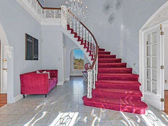 Live Large on this 1 acre estate overlooking the river, forest and meadows full of wildlife. Your home will be more like a resort with 7500 sq ft. of living space with indoor salt water pool and sauna. 5 oversized bedrooms and 4 bathrooms should fit the largest of families. Luxury and formality is around every corner with grand circular staircase, spa bathroom with jet tub overlooking grounds, large decorative crown moldings and ceiling decor, chandeliers, marble floors and transitions, cast iron church railings, walnut and parquet hardwood floors plus formal diningroom and livingrooms. 4 decks overlooking all corners of property and all levels. Even a Rapunzel deck for the romantics over the front door. Huge covered front porch with 6 huge columns give this house a Georgian Manor feel. Come see the 'Million Dollar View'