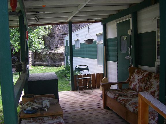 Property-Three contiguous lots 100'x30' each totaling 3000 square feet or .069 acres. Backing against rock cliff and facing the street in Murphy Hot Springs, Idaho, not Murphy, Idaho (same county, different area) Main house- 8'x42' trailer with 12'x15' addition totalling approximately 620 square feet. 1. All plumbing upgraded. 2. Upgraded bathroom (vanity, shower, toilet, 50 gallon hot water heater). 3. Dedicated well is 90' deep with new pump installed in 2017. 4. Upgraded septic system including drain field. 5. Fiber optic phone and internet access. 6. Wood heat. 7. Small a/c unit. 8. Extensive landscaping with 2 decks, hanging flower garden on cliff face and vegetable garden behind the house. 9. Shed for wood, ATV storage, etc. 10. Views of both sides of the East Fork Jarbidge Canyon. Second house- 8'x42' trailer with 12'x26' addition totaling approximately 730 square feet. 1. Needs repairs to roof and interior to make it livable. 2. Used for storage. 3. Both homes have electrical connections and both utilize the same well and septic system. Perks: 1. Two minute walk to the East Fork Jarbidge river for fishing, floating, kayaking (listed Idaho wild and scenic river). 2. Five minute walk to local, developed hot springs. 3. Thirty minute ride to Jarbigde Wilderness Boundary. 4. Access to hundreds of square miles of public land straight from the front door. 5. High concentration of wide variety of wildlife. 6. Hunting, fishing, hiking, horse back riding, ATV riding, photography, etc. all accessible right out the front door. 7. Road maintained in winter for year round access. 8. Thirteen miles from the historic mining town of Jarbidge, NV. 9. Local area school k-9. Does not include fridge and will have different (but good) wood stove than shown in pictures.