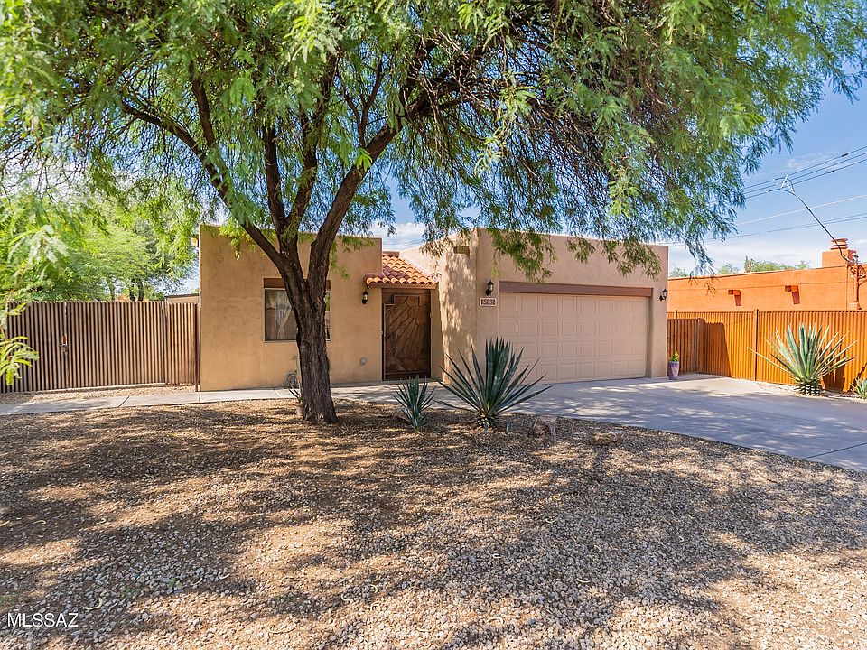 Welcome to your dream home in central Tucson! This charming 3-bedroom, 2-bathroom residence, built in 2002, offers 1,315 sq. ft. of modern comfort. Step inside to discover new ceramic tile flooring throughout, tall ceilings, and a desirable split floor plan that ensures privacy. The open kitchen is a chef's delight, featuring granite countertops and stainless steel appliances. The spacious primary bedroom boasts a large walk-in closet with custom built-ins for ample storage. French doors with built-in blinds lead to a stunning private backyard oasis, complete with a pool, covered patio, flagstone, artificial turf, custom metal fencing, and a cozy fire pit. Plus, enjoy the convenience of a 2-car garage and plenty of room for your toys or RV. Don't miss out on this beautiful home!
