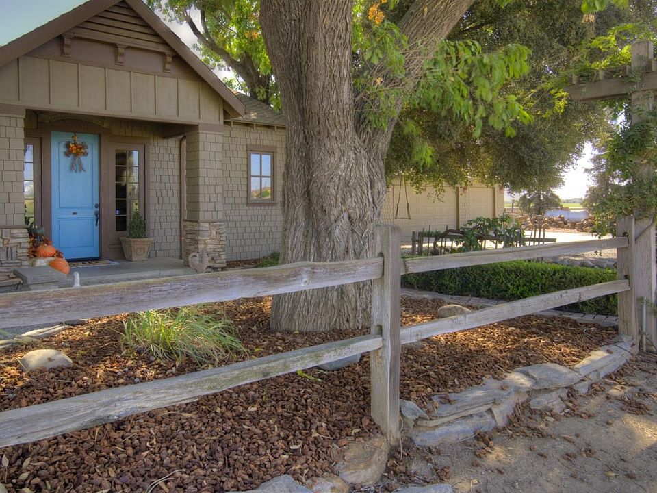 Extremely Unique 1 Ac Ranchette, bordered by Metal Pole Fencing, surrounded by 30+ mature Aptos Blue,Crepe Myrtle,Japanese Maple,Olive & Pomegranate Trees. Expanded to 2600+ sf w/ New Septic & New 3-zone HVAC Sys & 50 yr Pres Roof in 2003. Incld's 2700 sf Cement Block Dairy Barn, re-purposed into 3 separate areas- Back has been converted to 1 BR Guest Cottage. Middle is Workshop Spc. Front is Storage Spc. 3-car Garage has Full Ba, Kitchen Laundry & temp walls for LR, BR & Strg. Many possibiliti