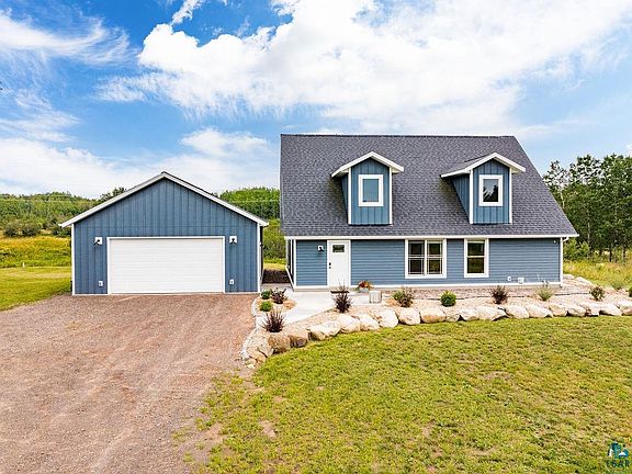 Welcome to your dream home! This stunning two-bedroom, two-bathroom residence, built in 2017, sits atop a picturesque hill on over ten acres of beautiful land just minutes from Duluth, Hermantown, or Cloquet. The home boasts a modern open-concept design, perfect for seamless living and entertaining. The spacious kitchen features a walk-in pantry, providing ample storage for all your culinary needs. Adjacent to the living area, you'll find a dedicated work-from-home station, offering a comfortable and productive space. Enjoy the convenience of a large garage and an additional pole building, ideal for storage or a workshop. The septic system is sized for four bedrooms, providing flexibility for future expansion. With breathtaking views and abundant space, this property offers a perfect blend of modern living and serene country charm. All offers due by Sunday 8/11 at 3:00