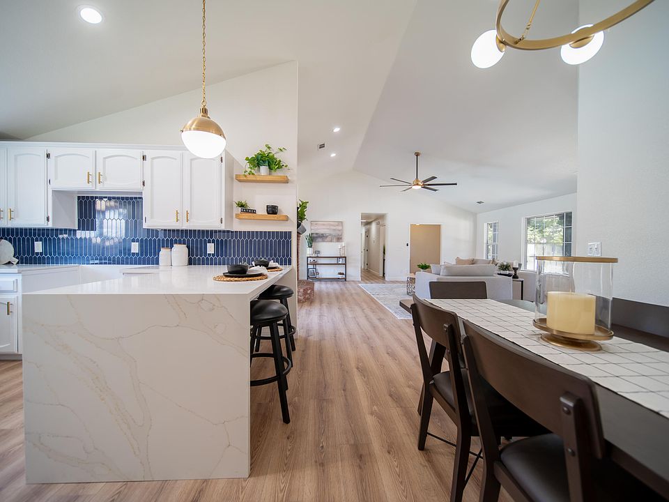 Welcome to your dream home! This beautifully remodeled home has so much to offer starting with 3 bedrooms, 2 full bathrooms and a bonus room that can be used as an office, a den, or a spare bedroom... the possibilities are endless! The exterior will grace you with the stunning front and back low maintenance landscape with turf, a new roof, new AC, 3 car garage, and fresh exterior and interior paint. Lets not forget the refreshing pool, perfect for these hot summer days! As you walk into the home you will notice the stunning hand picked modern light fixtures and fans. In the large family room you will find some of the original charm in the brick fireplace which adds the perfect amount of coziness. The fully remodeled kitchen adds a touch of elegance with it's custom navy blue backsplash, gold accents, and Quartz countertops. Not to mention the breakfast bar area with the stunning waterfall countertop. As you continue into the home you will notice the spacious laundry room with an abundance of storage throughout. The guest and primary bathrooms have been fully remodeled to offer a spa-like feel, with Quartz countertops and stunning tile showers. Witness firsthand the charm, elegance, and countless possibilities that await within these walls. Call your agent now before its gone!