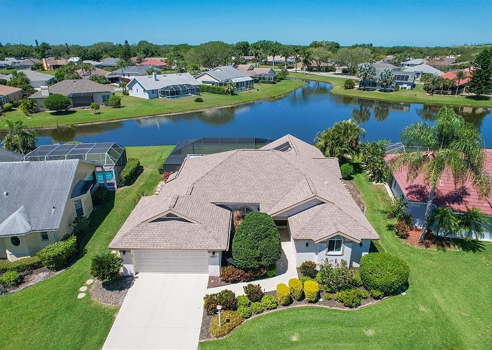 Unparalleled views in Mote Ranch. As soon as you enter, the views from the lanai overlooking the pool are a true showstopper. Welcome to your slice of paradise in the highly sought-after community of Mote Ranch. Nestled within mature landscaping and boasting unmatched lake views and sunsets, this stunning 3-bedroom, 2-bathroom home offers the perfect blend of tranquility and convenience. Located in a quiet neighborhood, this immaculate residence is a true gem. Step inside and be greeted by an inviting open floor plan that seamlessly combines the kitchen, dining area, and living room, perfect for both everyday living and entertaining guests. The extra tall, vaulted ceilings and abundant natural light create an airy and spacious atmosphere, while ceiling fans throughout ensure comfort year-round. The heart of the home is the large, open gourmet kitchen, complete with subway tiles, a huge island that could seat 10 people, and a separate breakfast eating area. Whether you're preparing a meal or gathering with loved ones, this kitchen is sure to impress even the most discerning chefs. Unwind in the luxurious main bedroom, featuring a recently updated main bathroom with a huge walk-in shower and modern tilework. With a split floor plan, privacy is ensured with two additional spacious bedrooms and a guest bathroom. One guest bedroom even includes an office nook, perfect for those who work from home or need a quiet space to focus. Outside, the extra-large lanai with a solar heated pool overlooks the serene lake, offering the ultimate spot for relaxation and enjoyment of the absolutely breathtaking views. With hurricane shutters and plantation shutters throughout, peace of mind is guaranteed, even during storm season. Residents of this community enjoy access to a community pool and a local kayak launch. Plus, with the ultra-low HOA fees, you'll enjoy the benefits of community amenities without breaking the bank. Conveniently located close to the UTC shopping district, restaurants, and all the beaches in the area, including Lido Key Beach, this home offers easy access to everything you need. And with the international airport at SRQ just a short drive away, travel is a breeze. Don't miss your chance to own this exceptional lakeside retreat. Schedule your private showing today and experience the epitome of Florida living!