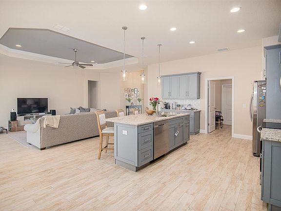 This stunning 3 bedroom 2 bathroom with an office home was built by Tapia just two short years ago! The Shannon II floorplan delivers over 2200 square feet of living area nestled into the highly sought after gated community of Highland's Grace. Beautiful pavers and a two car garage greet you at the entrance followed by soaring ceilings once through the front door. You will see an office behind two French doors, but the real star is the open great room with triple sliders allowing tons of natural light leading to a large back lanai. Looking left is a wonderfully thought out kitchen with all stainless steel appliances, soft close cabinets, generous pantry, and laundry room. The two guest bedrooms have plenty of space and anchor the second bathroom. The large master retreat with two walk in closets boasts a gorgeous bathroom complete with tub, glass enclosed shower, along with his and her sinks. There is a home security system installed with a ring doorbell added and a Nest thermostat to monitor comfort. Tiled floors in all high traffic areas, premium carpet in the bedrooms, granite counter tops, and elegant lighting should help place this meticulously kept home at the top of your list! Schedule your showing today!