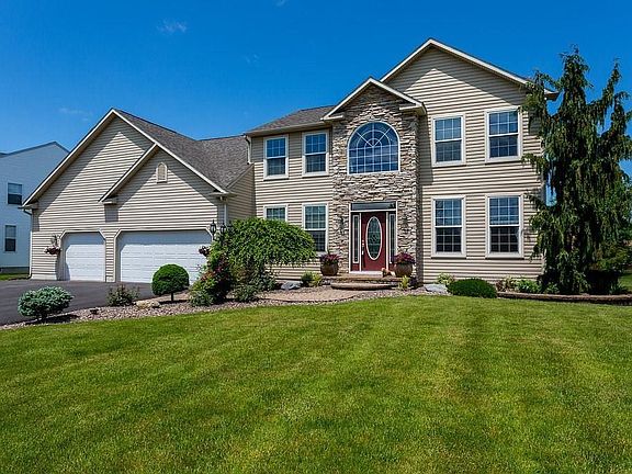 Custom Built 4 Bedroom, 2.5 Bath, 3.5 Car garage with beautiful Adirondack style finished basement. Numerus updates including new heated salt water pool surrounded by incredible hardscapes and deck, perfect for entertaining. Gleaming hardwood floors, walk in pantry, 1st floor Laundry, Mudroom, Sunroom, Dining room, 2 gas fireplaces, Master Bedroom suite, Interior freshly painted with custom blinds and window treatments. 1250 s/f of additional finished entertaining room in the basement with a full wet bar, plush carpet, fireplace, custom woodwork and cultured stone. This is the ideal space for that big Super bowl party.