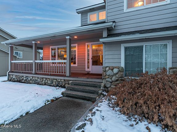 Beautiful 4 bedroom home on a spacious lot in CDA Place on a quiet street just a short walk from Bluegrass Park. Enjoy scenic sunsets from the back deck and sip coffee at sunrise from the classic wrap around front porch. Tastefully upgraded Laminate flooring, tile backsplash, stainless steel appliances, and air conditioning make this home the complete package. The 3 car tandem garage adds a 3rd parking space, workspace or flex space to be used in a variety of ways. Authentic natural rock features make this house stand out. The roof was replaced in 2017. Book your showing today.