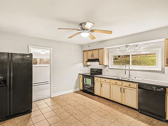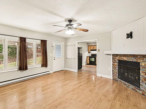 Updated one-level living! Move-in-ready ranch featuring a large living room with fireplace, eat-in kitchen with wood cabinetry, three spacious bedrooms, spa-like hall bath, and convenient laundry hookups off kitchen. Fresh paint and new carpeting throughout. Plus a front porch, rear shed (with electric!), and covered patio overlooking wooded privacy. All situated on a nearly 2-acre lot!