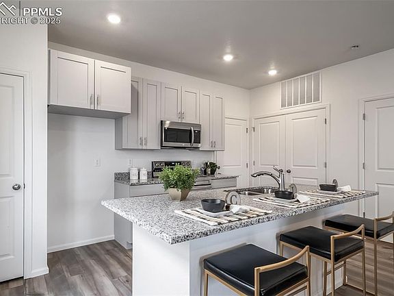Discover the Crest floorplan where style meets innovation in a home designed for flexibility, affordability, and efficiency. This 2-story, duet-style home spans 1,264 square feet and offers 2 bedrooms, 2.5 bathrooms, and a 2-car alley-load insulated garage. Experience low-maintenance living in an open-concept duplex floorplan with only one-shared wall and a private driveway. Energy efficiency is at the forefront with 2x6 exterior walls and low-E double pane windows, an advanced Rheia HVAC system, LED lighting, and a 96% high-efficiency furnace. All adding up to lower utility bills, backed by our Energy Smart Guarantee. These duet-homes have plenty of curb appeal with a stylish multi-dimensional exterior and front yard landscaping with a white picket fence. The interior is bright with oversized windows and an expansive “heart of the home” great room. The kitchen is complete with a dining island, stylish countertops, stainless-steel sink, and large pantry. The upstairs boasts two separate bedroom suites both complete with their own bathroom and large walk-in closet and a well-placed loft for your everyday needs.