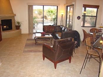 Almost 3000 square feet of luxury living on 3.6 acres! Special features of this custom home include: tile flooring throughout except bdrs, slab granite countertops, upgraded appliances, huge open great room, formal dining room, 4 bdrs + den and bonus/play room, 2 full bathrooms + powder room, split bdr plan, volume ceilings w/recessed lighting, jacuzzi tub in m-bath with xtra large separate shower, custom closet organizer in m-bdr closet, beehive fireplace, kitchen island, maple cabinets w/hardware, breakfast nook overlooking the fabulous backyard oasis with full length covered patio, sparkling salt water pebble tec pool and raised spa with waterfall, built in bbq, landscaped with flowering shrubs, palm trees, view fencing and plenty of room to roam! Horses and RV's are allowed!