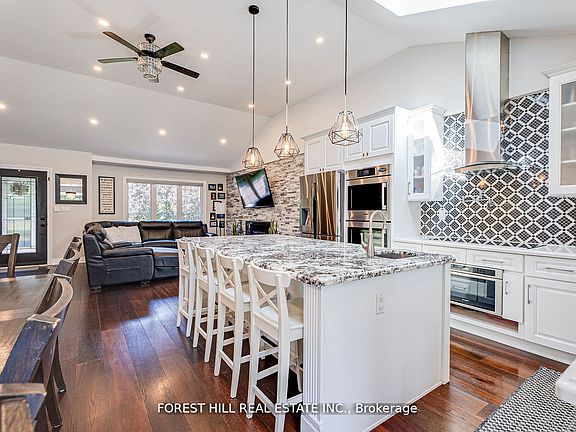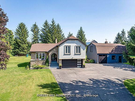 Set on over 1.5 acres in Innisfil, this stunningly upgraded 4+1 bedroom, 3 bathroom side-split home combines modern living with serene privacy. The open-concept main level is filled with natural light from expansive windows and skylights, creating a seamless flow between the living, dining, and kitchen areas. The chef-inspired kitchen boasts high-end appliances and premium finishes, perfect for both everyday living and entertaining. The lower-level split offers a warm and inviting family room with a walkout to the backyard, and a separate entrance while the finished basement provides additional living space, ideal for extended family, guests, or potential income opportunities. Beautiful hardwood flooring extends throughout the home, adding a timeless touch. Brand New Furnace! (2025) A partially finished guest house with a walkout to its own deck adds even more potential. Outside, the expansive backyard offers endless possibilities for outdoor living, gardening, or simply enjoying the peaceful setting. This is a rare opportunity to own a property that truly blends luxury, versatility, and privacy.