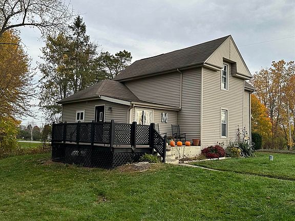 Great opportunity for affordable country living! This home features 3 bedrooms, 1 bath, kitchen with ample cabinet space, dining and living rooms. Upstairs also has a landing area that can be used as additional play space, reading nook etc. Basement has had waterproofing system installed. Outside on .8 acres, you have a rolling yard, detached garage, deck and patio areas! Plenty of room for fall bonfires! Home is in great shape and ready for you!