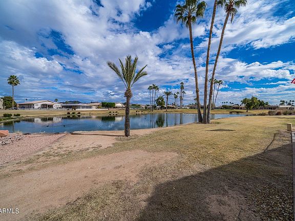 Views galore of the golf course, mountains, and pond with fountain! Updated lovely home on Apache Wells Golf Course, an active adult community. Updated 2 bedroom + bonus room, 2 bathroom, 2 car garage w/cabinets home on a prime lot! Kitchen has beautiful appliance package, Cambria quartz on island & countertops (and bathrooms.) Large updated Master ensuite features walk-in shower, double sinks. Gas for kitchen range, fireplace and water heater. Updated LED lighting, outlets & switches to enhance your everyday living. New tile flooring throughout. Newer A/C. Wide backyard great for sun or shade seekers. Bonus: Solar panels already paid by Seller. See attachment for list of updates. Furnishings do not convey.